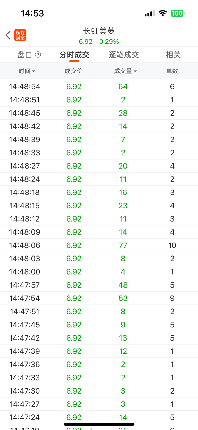 $长虹美菱(SZ000521)$ 清一色的主动卖单。 都是基金在出货。哎。