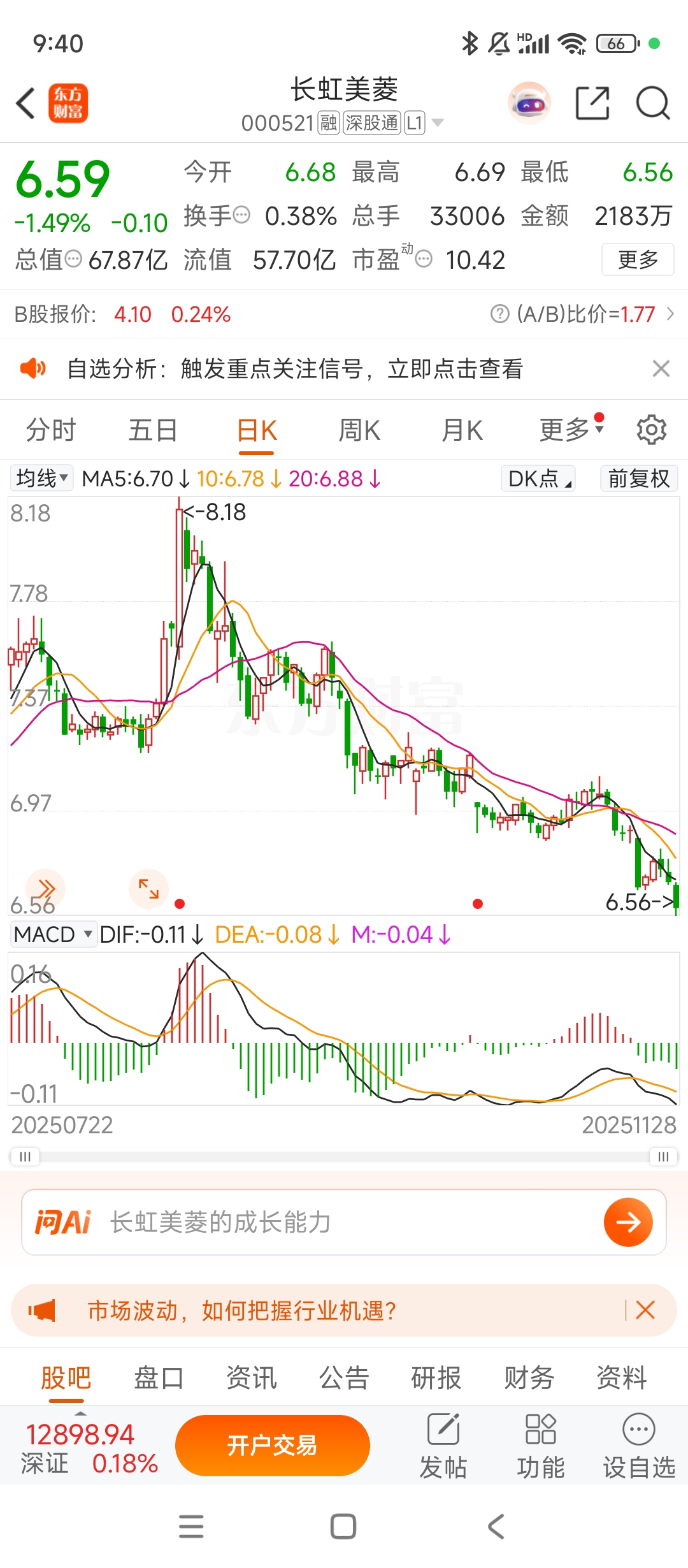 $长虹美菱(SZ000521)$ 看看吧股价又创新低了!