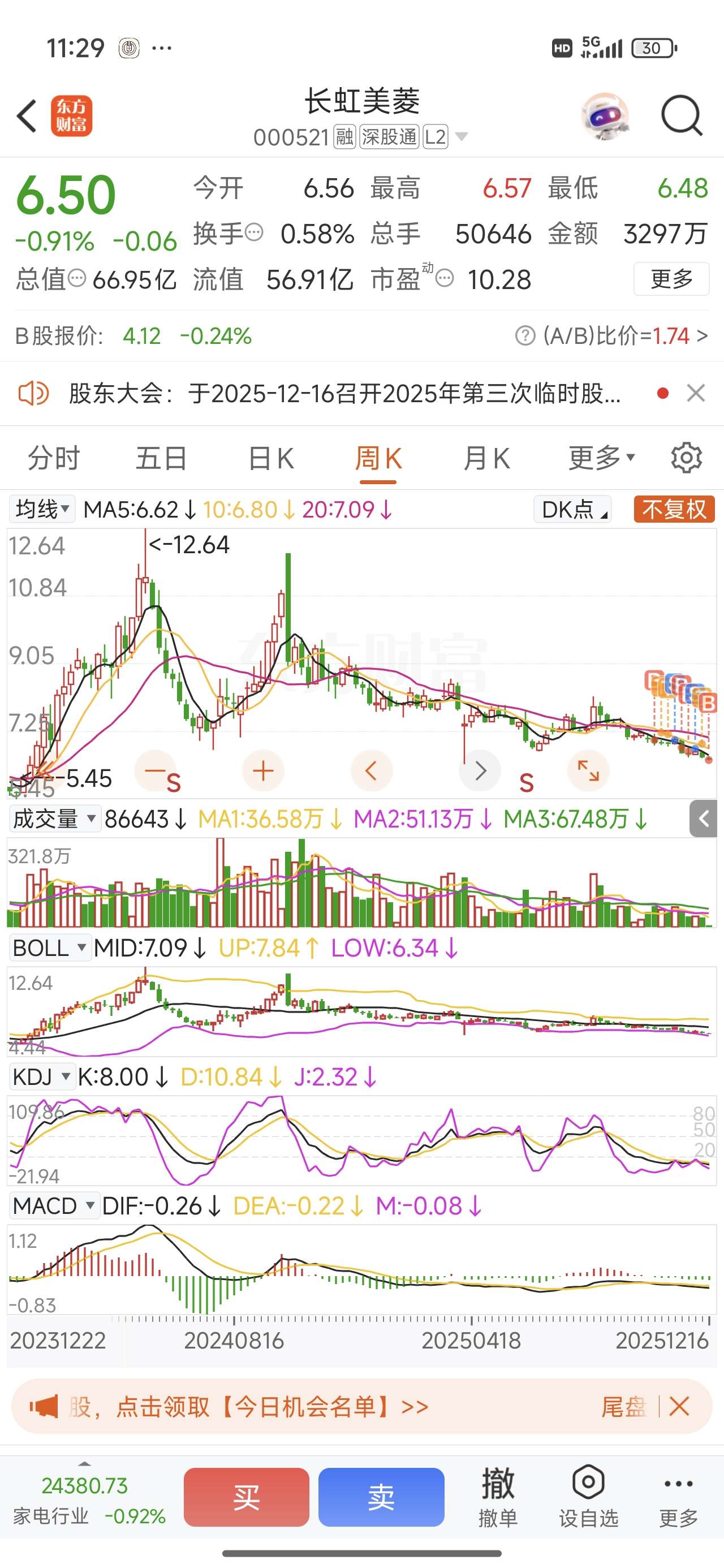 $长虹美菱(SZ000521)$ 越跌越买钱就是这样亏了的