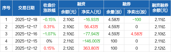 长虹美菱:融资净偿还16.93万元,融资余额2.1亿元(12-18)