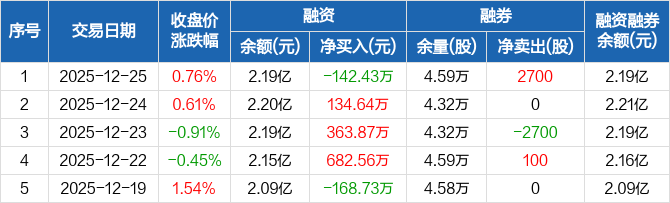 长虹美菱:融资净偿还142.43万元,融资余额2.19亿元(12-25)