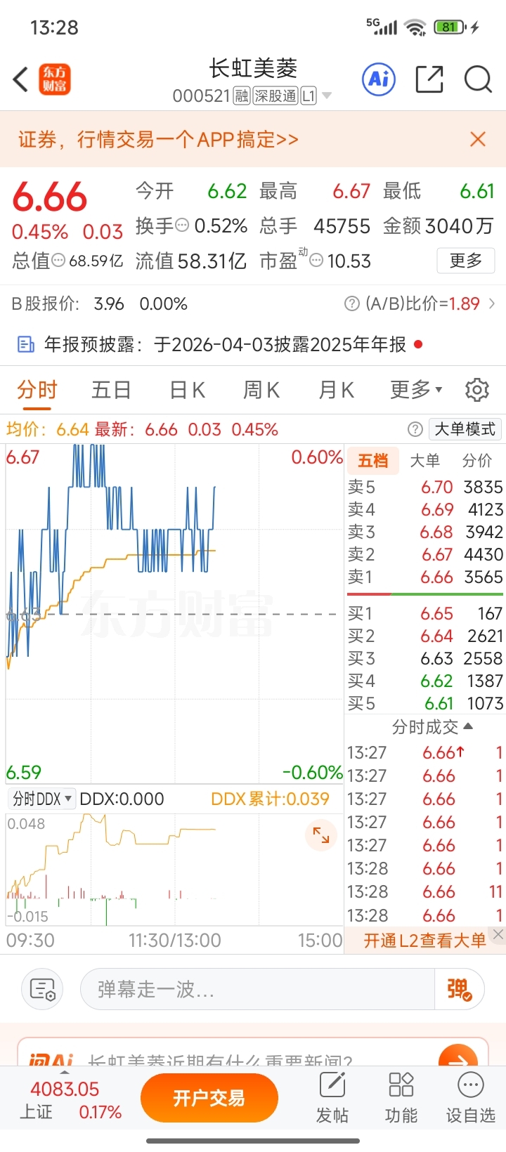 $长虹美菱(SZ000521)$ 真的棒棒哒全部都是1手1亏的
