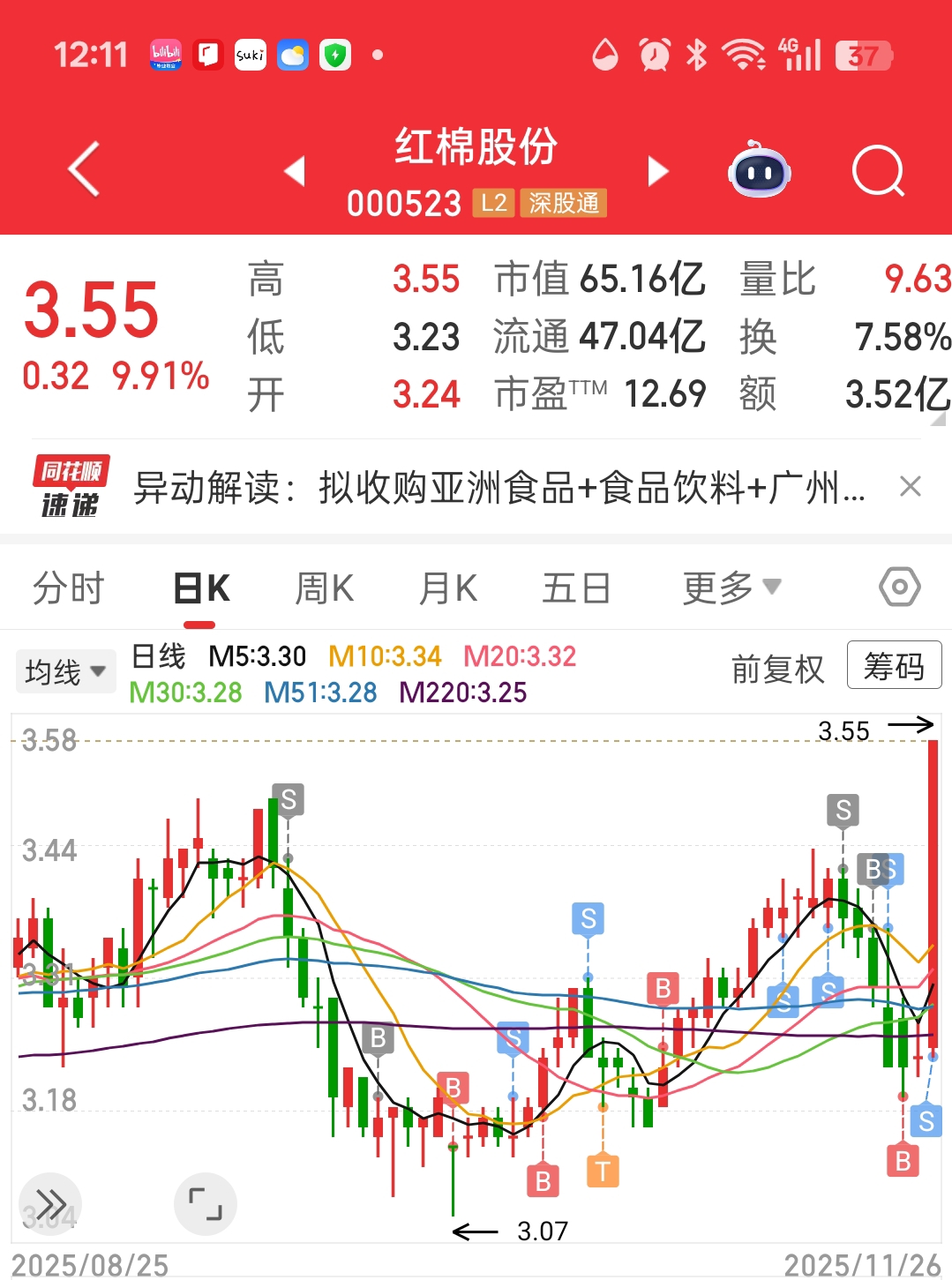 $红棉股份(SZ000523)$ 在红棉进进出出也三年了。这一次是极少数在没有利好的情况下主动板,但是强度不高。希望这次我是减错仓了吧。真的希望看到红棉拉一波主升浪,让我再也没机会加回来。