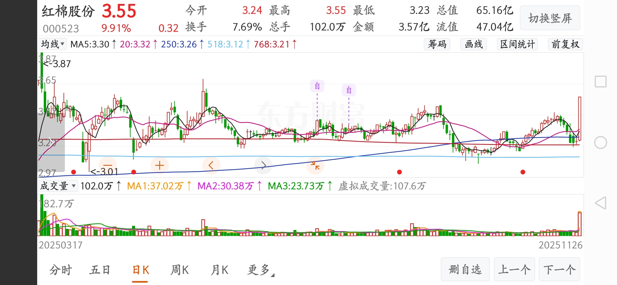 $红棉股份(SZ000523)$ 今天是标志性的一天!明白下图的人都会获利的,中长期更稳妥,2025年11月26号记录!