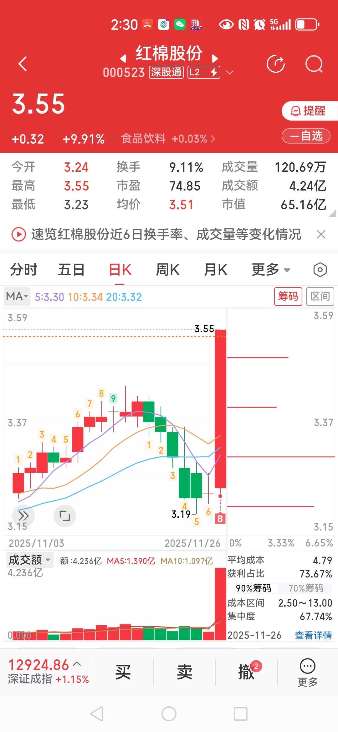 $红棉股份(SZ000523)$ 不经意3.25重仓买入下午一看涨停板