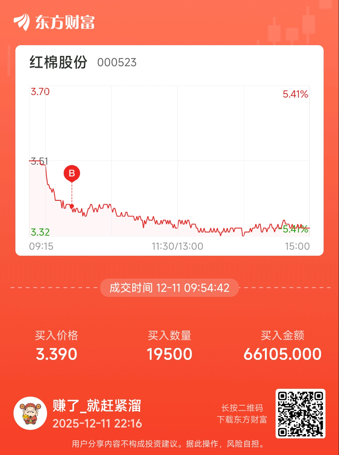 早上在$红棉股份(SZ000523)$ 和$国风新材(SZ000859)$ 之中选了红棉,今天吃面。