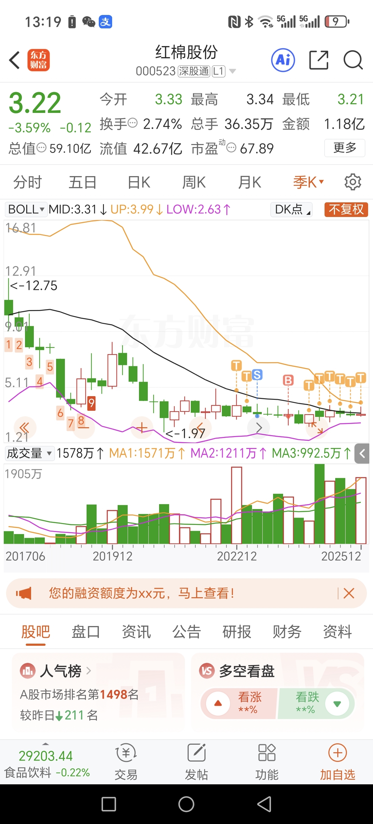 $红棉股份(SZ000523)$ 下跌补仓拿他两年又何妨