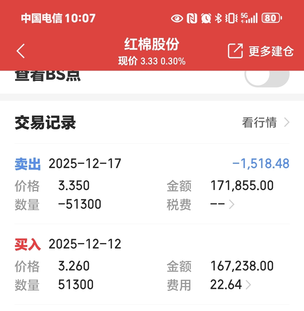 $红棉股份(SZ000523)$ 做T不贪,只要到3.25左右就买,到3.35就卖