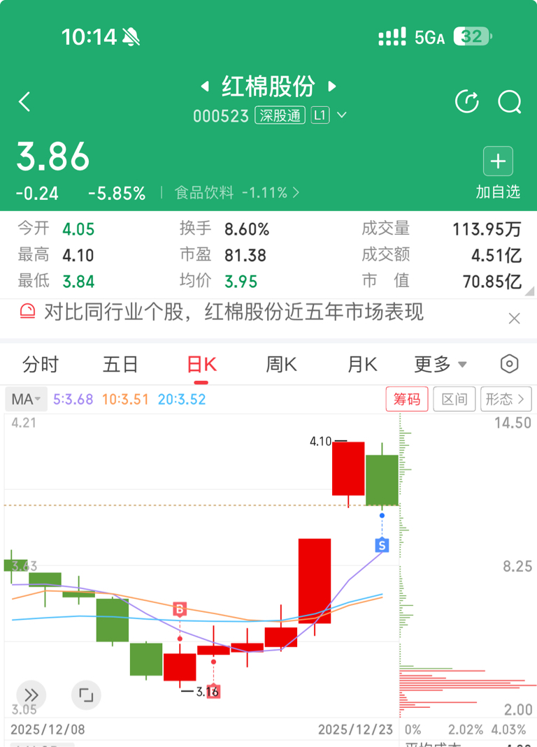 $红棉股份(SZ000523)$ 兄弟们我先走了,留下的发财