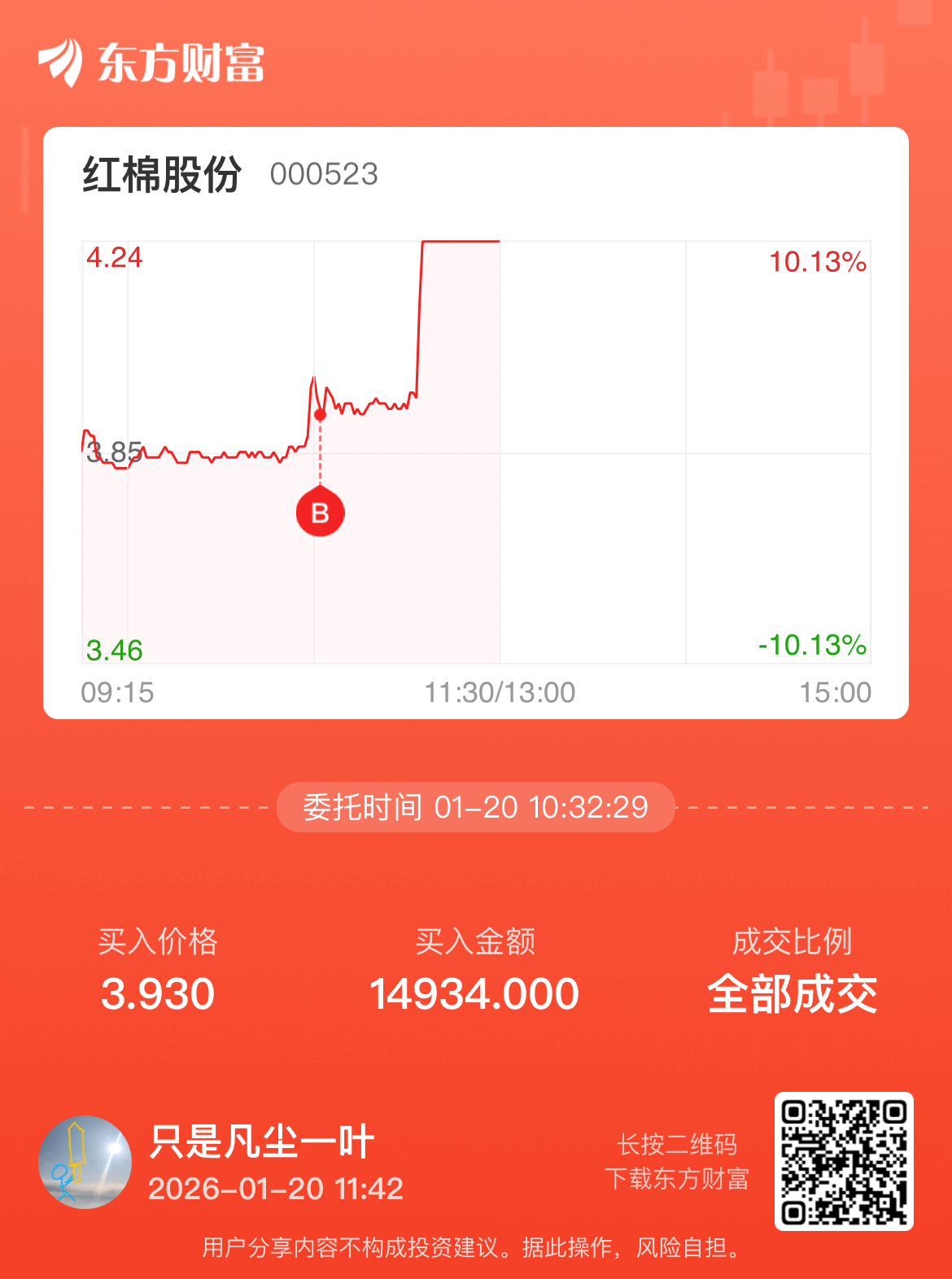 温馨提示: 1.根据《证券法》规定,禁止编造、传播虚假信息或者误导性信息,扰乱证券市场;2.用户在本社区发表的所有资料、言论等仅代表个人观点,与本网站立场无关,不对您构成任何投资建议。用户应基于自己的独立判断,自行决定证券投资并承担相应风险。《东方财富社区管理规定》