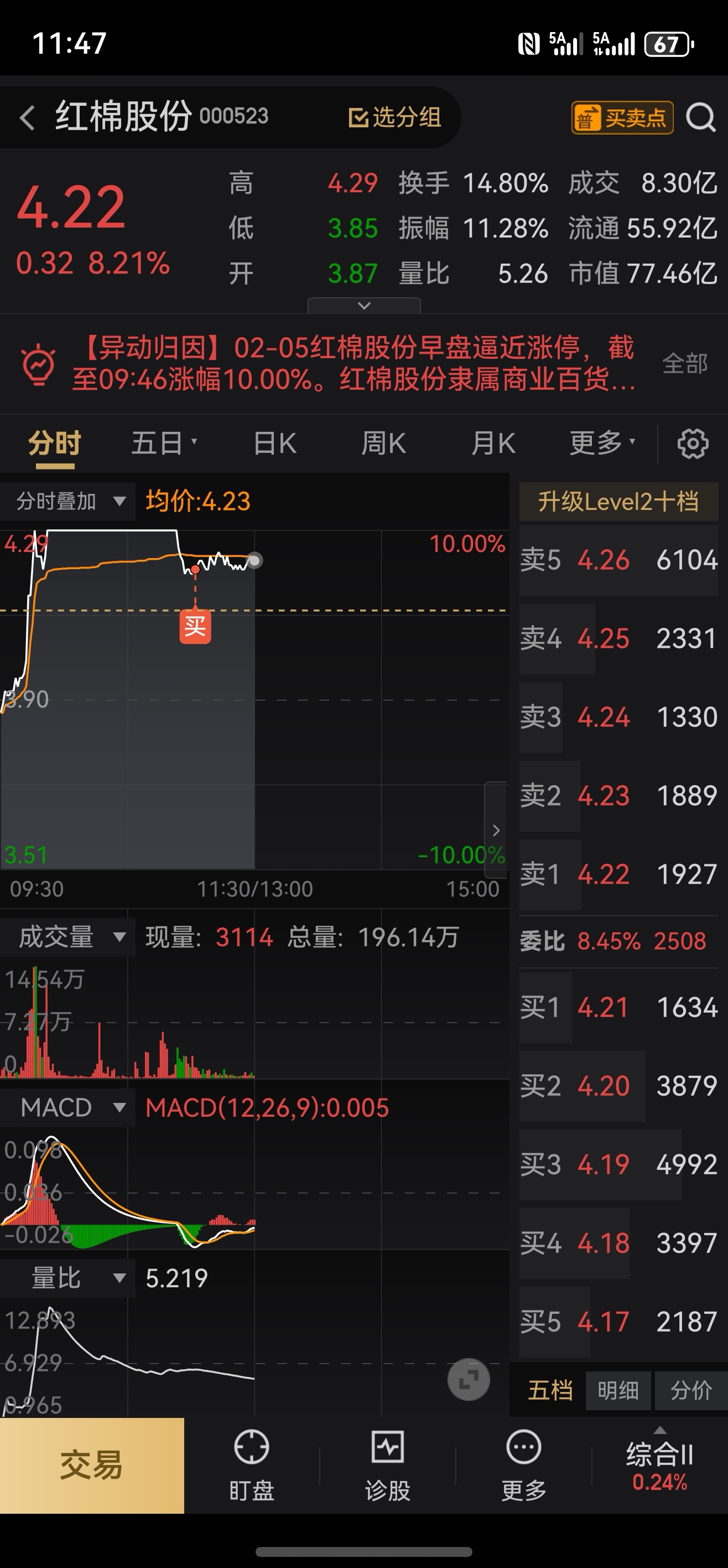 $红棉股份(SZ000523)$ 加仓猛干