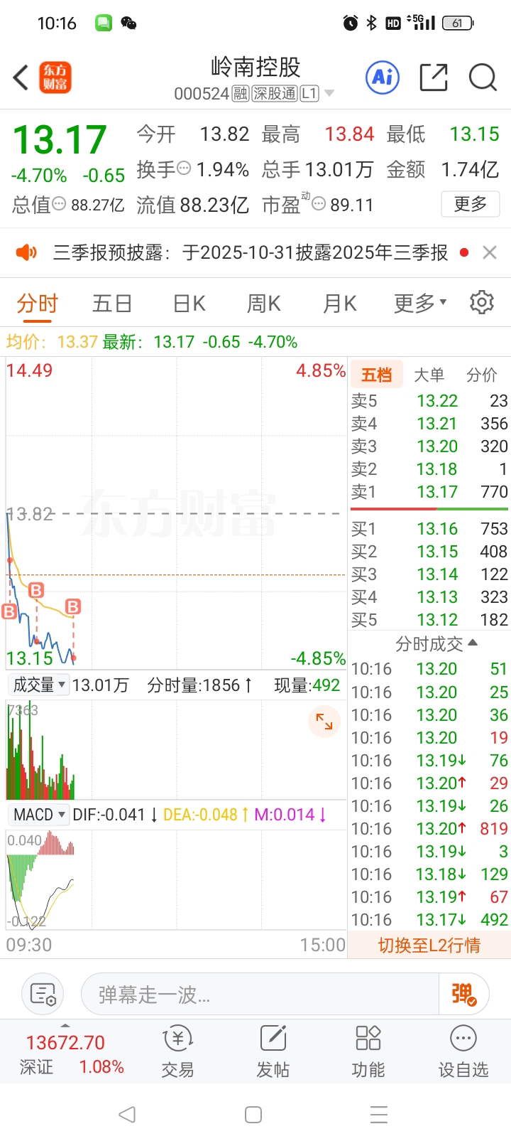 $岭南控股(SZ000524)$ 目的很明确,就是等着补日线口子