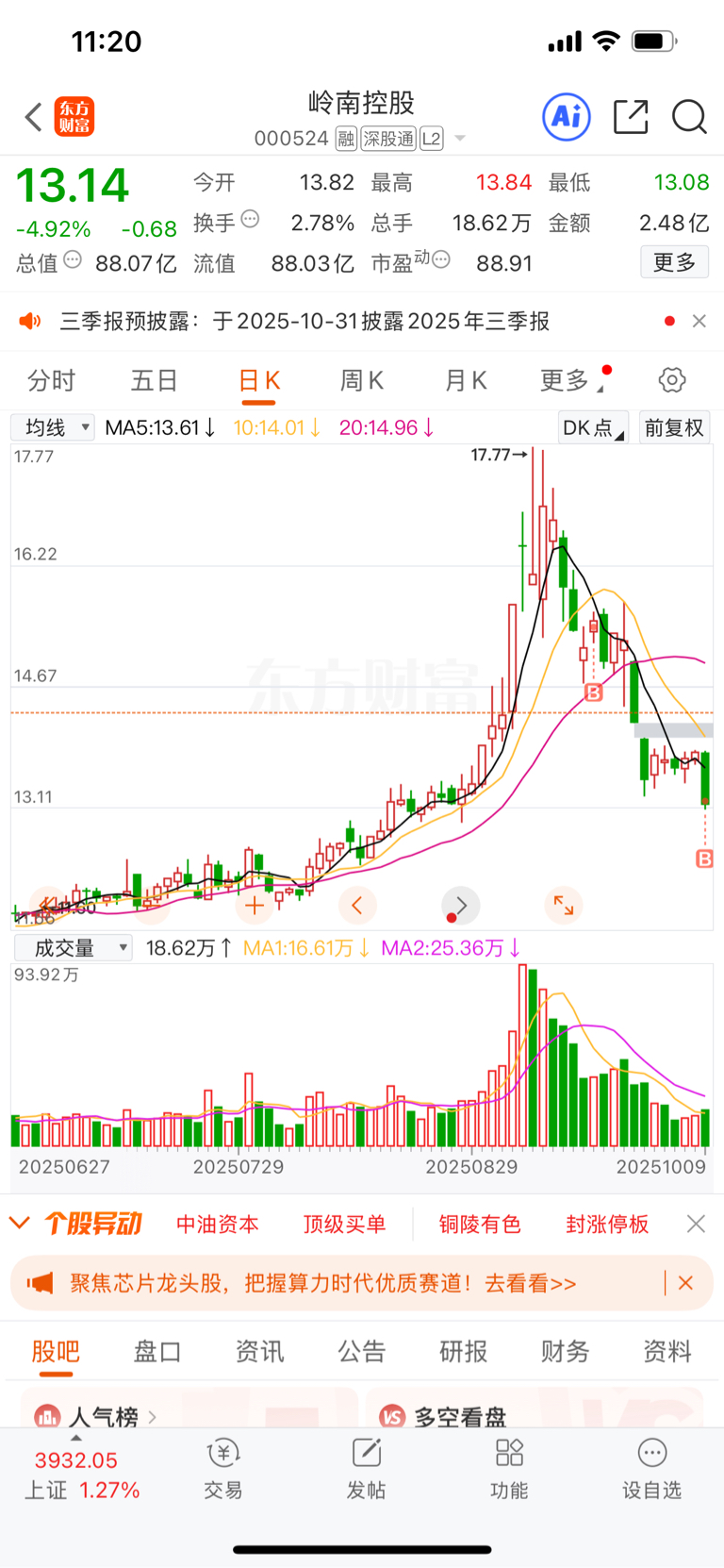$岭南控股(SZ000524)$ 加仓猛干,要死也死你肚脐上!