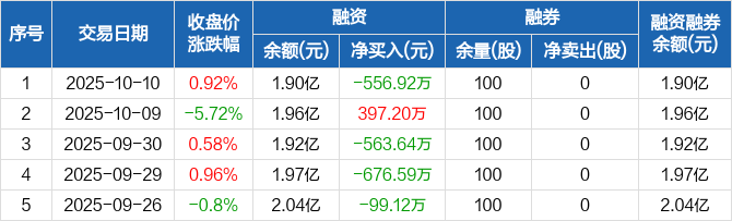 岭南控股:融资净偿还556.92万元,融资余额1.9亿元(10-10)