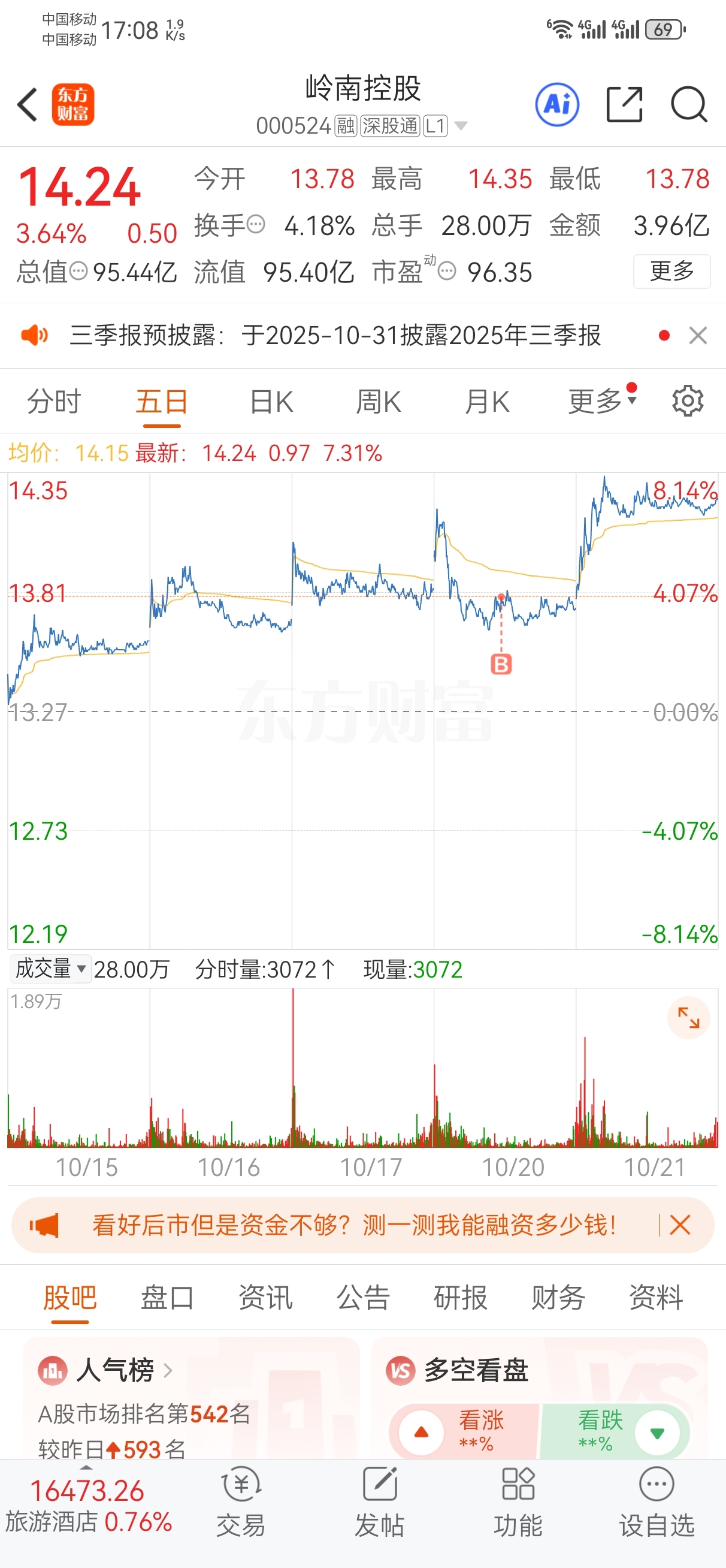 $岭南控股(SZ000524)$ 今天,相当于9.1日的走势,3天内,没有打拉升,我直播倒立洗头