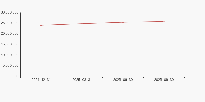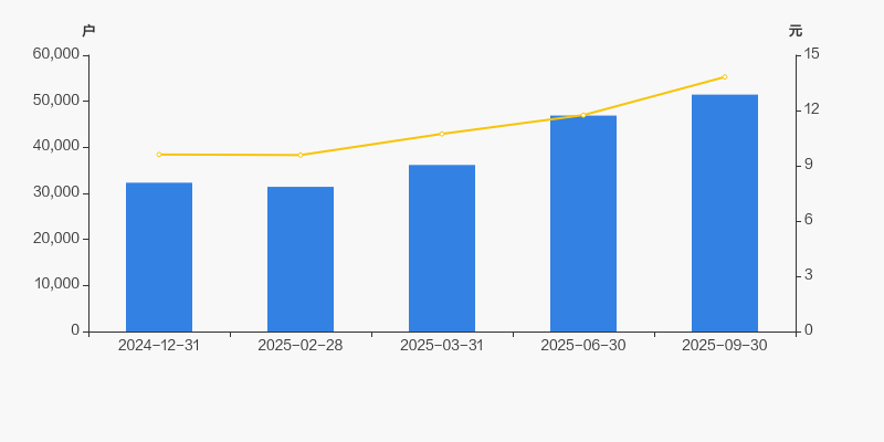 自2025年2月28日以来,公司股东户数连续3期上涨,截至目前增幅为63.75%。2025年2月28日至2025年9月30日区间股价上涨44.20%。