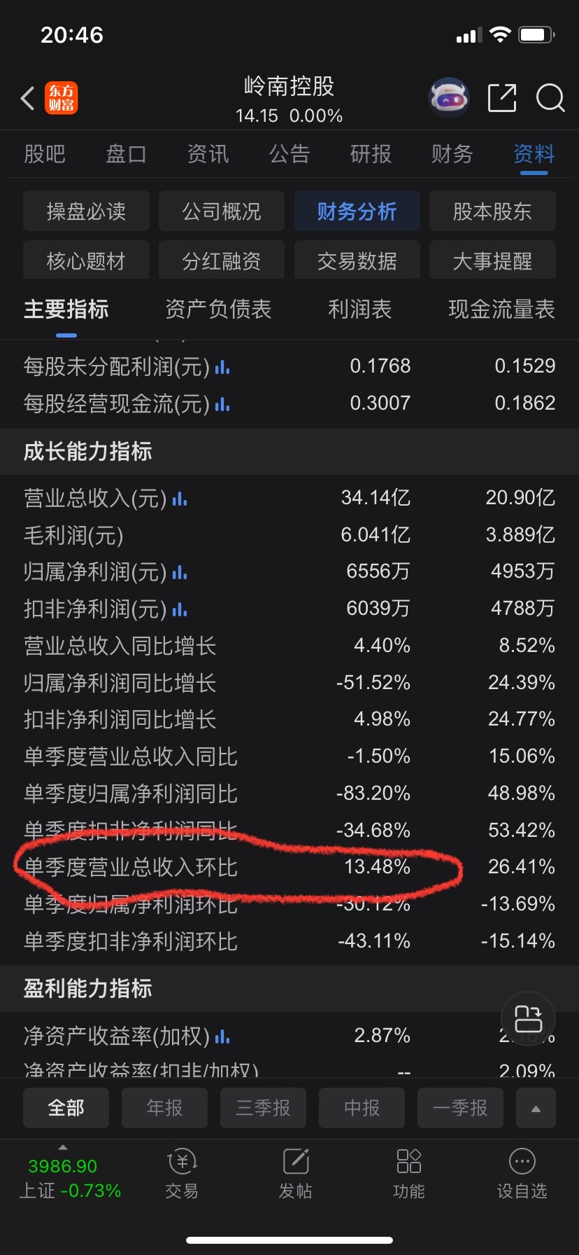 单季营业收入环比增长13.48%,证明业绩是增长的!归母净利润减少是因为股权投资