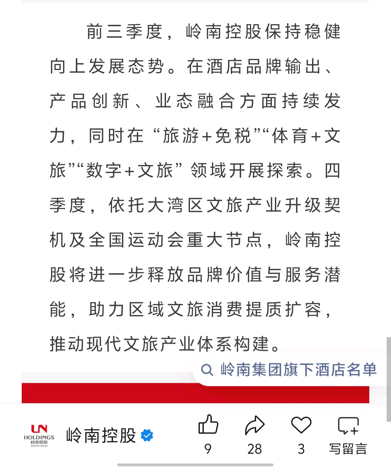 $岭南控股(SZ000524)$ 旅游+免税+体育+数字+小马智行自动驾驶旅游专线+地空旅行+广之旅全运会售票+扣非净利润稳步增长+扎根大湾区=十五运龙头!!!#强势机会#