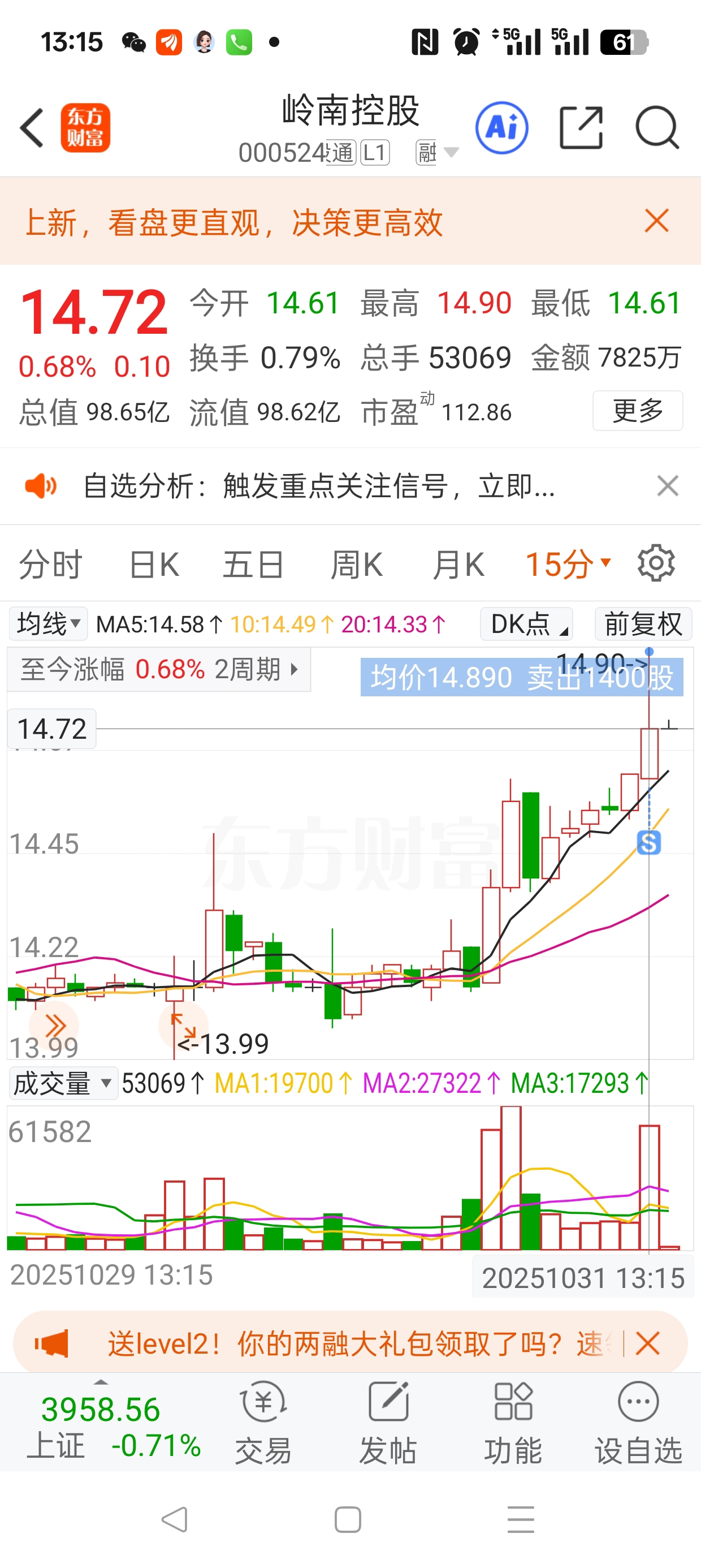 $岭南控股(SZ000524)$ 亏3个点,割肉走了,留下的发财