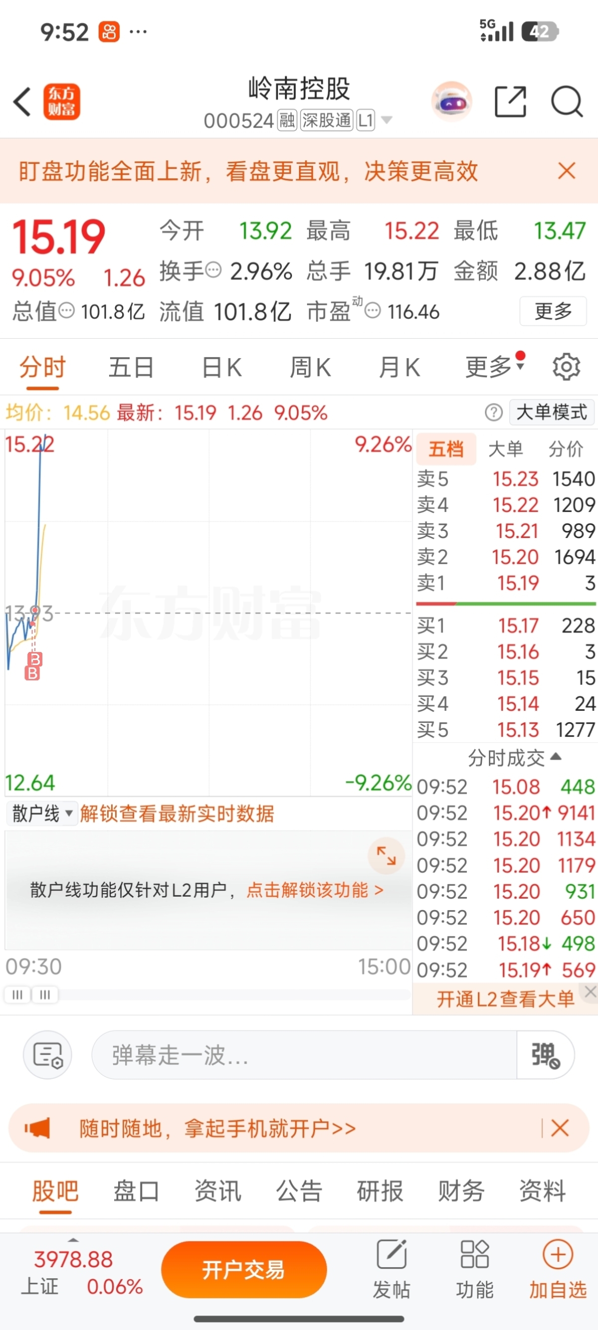 今日早盘介入岭南控股,是基于股价强势反转的技术信号、资金面的积极承接以及板块题材