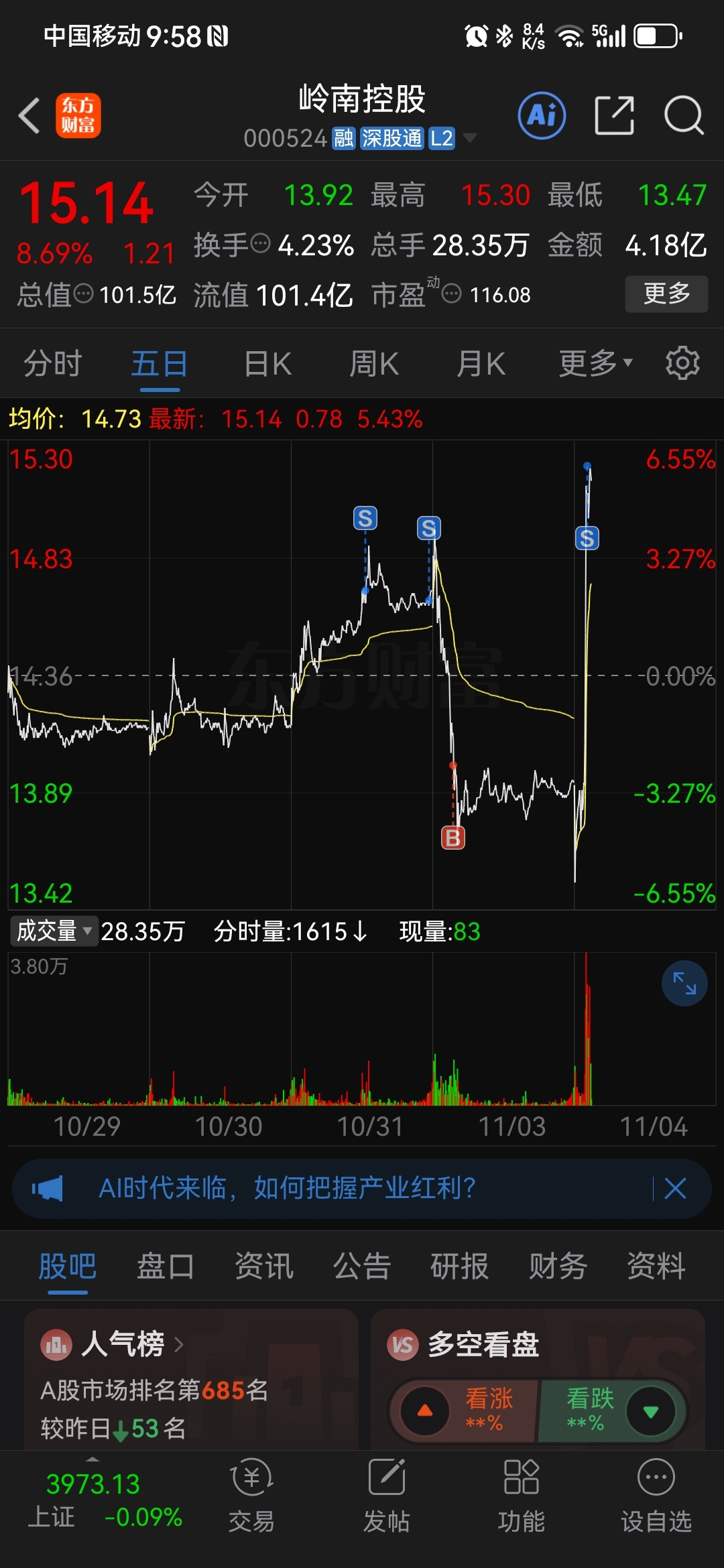 温馨提示: 1.根据《证券法》规定,禁止编造、传播虚假信息或者误导性信息,扰乱证券市场;2.用户在本社区发表的所有资料、言论等仅代表个人观点,与本网站立场无关,不对您构成任何投资建议。用户应基于自己的独立判断,自行决定证券投资并承担相应风险。《东方财富社区管理规定》