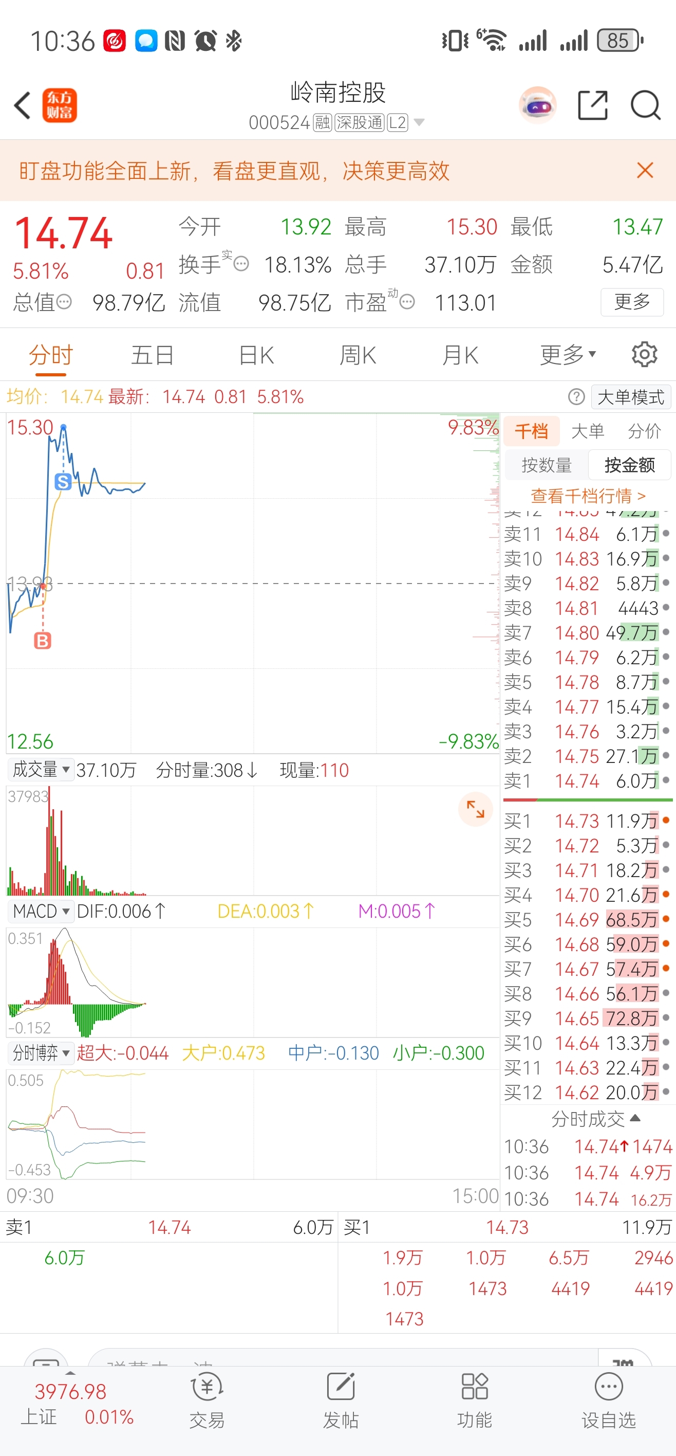$岭南控股(SZ000524)$ 近期操作最完美的一次,虽然只是运气,感谢主力抬轿子