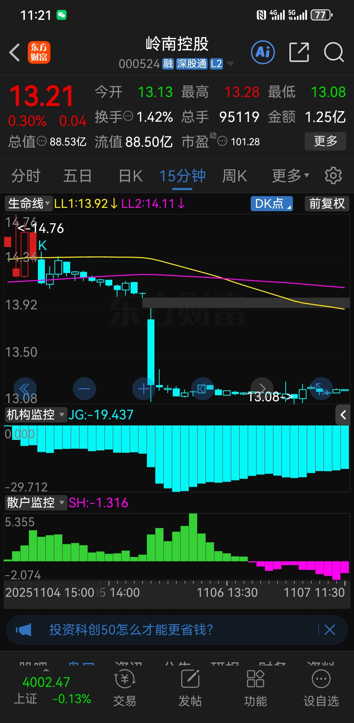 $岭南控股(SZ000524)$ 出货出的干干净净,蓝色柱子是主力持续出货,紫色柱子是散户卖出,如果紫色柱子出现绿色,散户买进,股价还要大跌