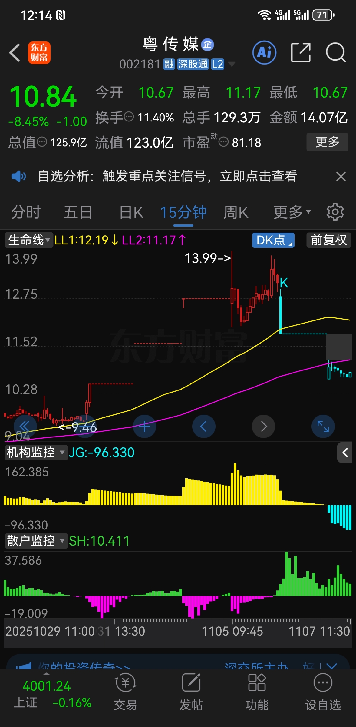 $岭南控股(SZ000524)$ 看看隔壁粤传,主力开始大规模出货,散户在买,价格大跌,软件监控超短线还是可以的,今天11.07粤传拉高全部出完了