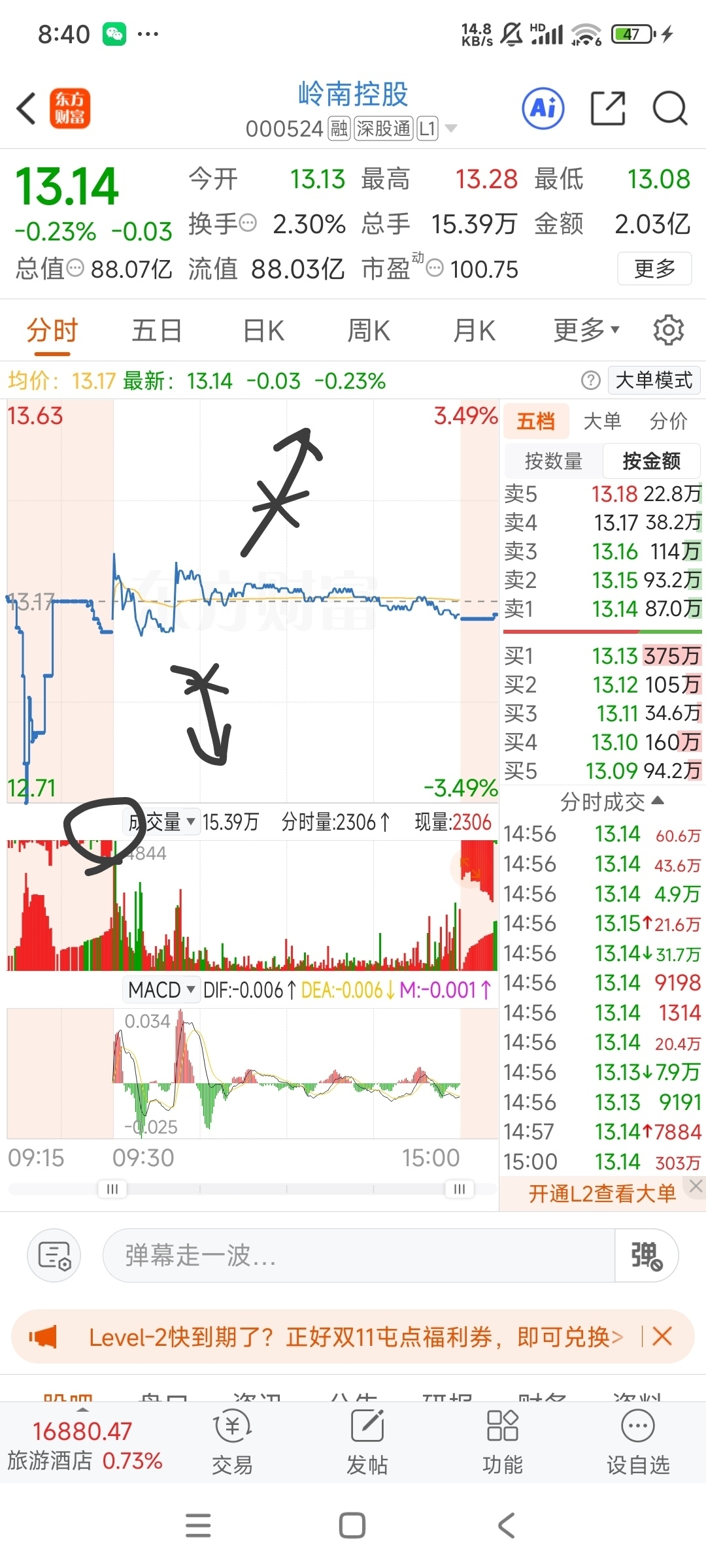 从竞价猜测,他们可能低吸,从结果看,既没掉下去,也没涨上去。掉下去收根下影线的话可以补一笔仓,涨上去那就出掉。说抗跌吧,没跟着板块反弹;说走弱,跌破又没掉下去。大概率是板块今天稳了它一把,如果情绪差,应该还要下一个台阶。