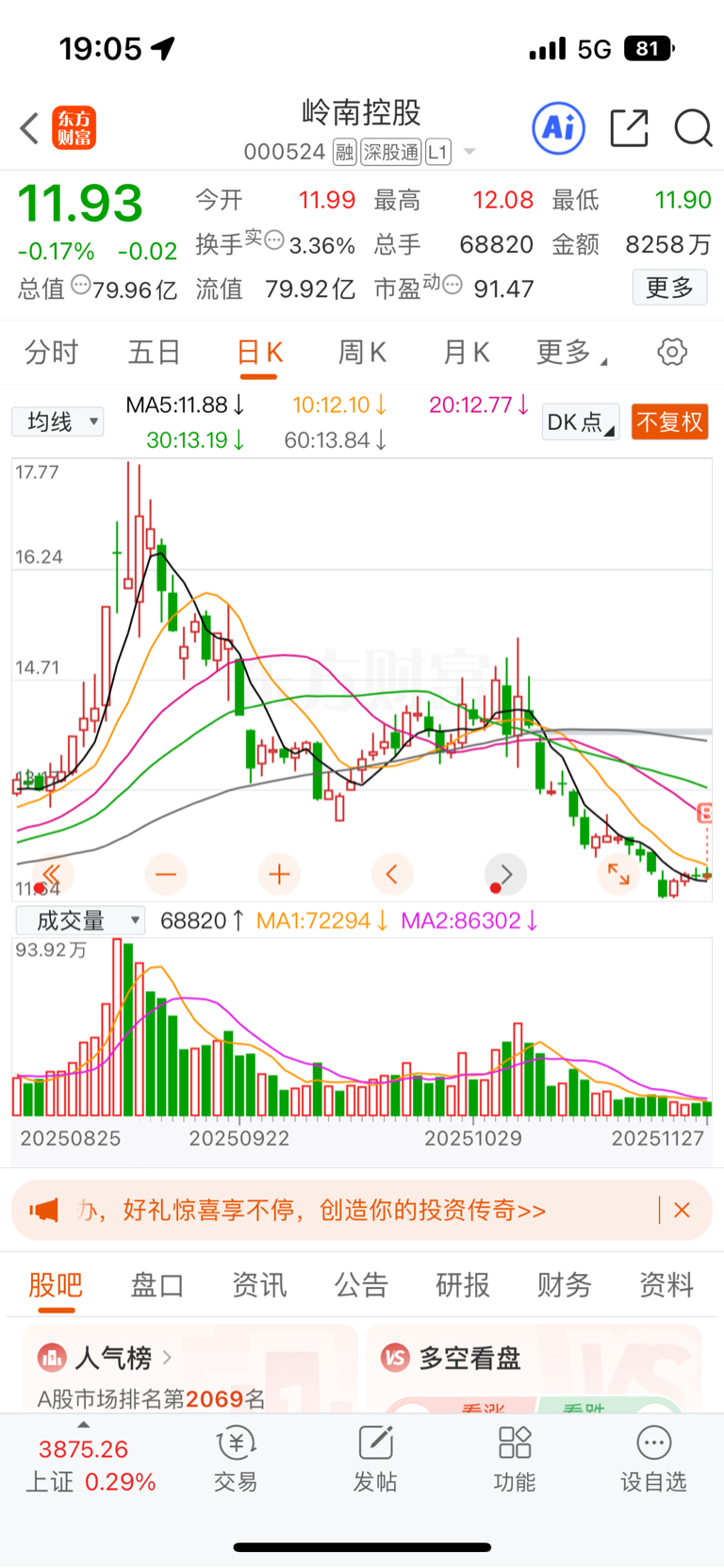 $岭南控股(SZ000524)$ 进来了兄弟们别慌