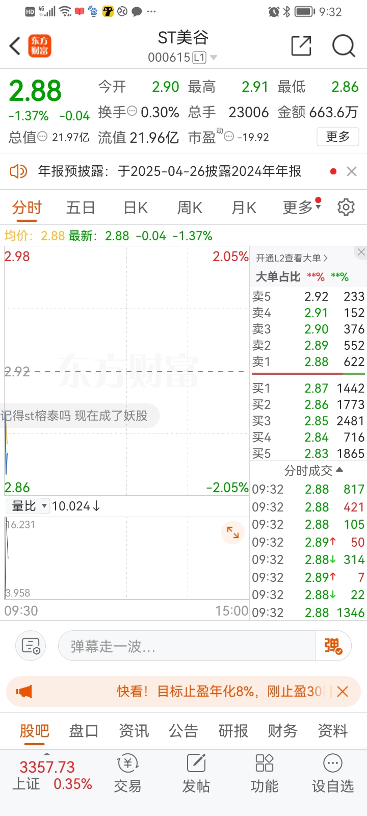 $ST美谷(SZ000615)$ ST股只要不退市,迟早会涨回来,如果真割了就当韭菜了。$*ST鹏博(SH600804)$ $ST花王(SH603007)$