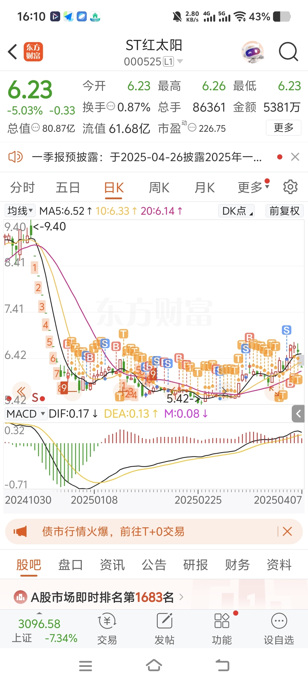 $ST红太阳(SZ000525)$ 老铁们,我一直都在。
