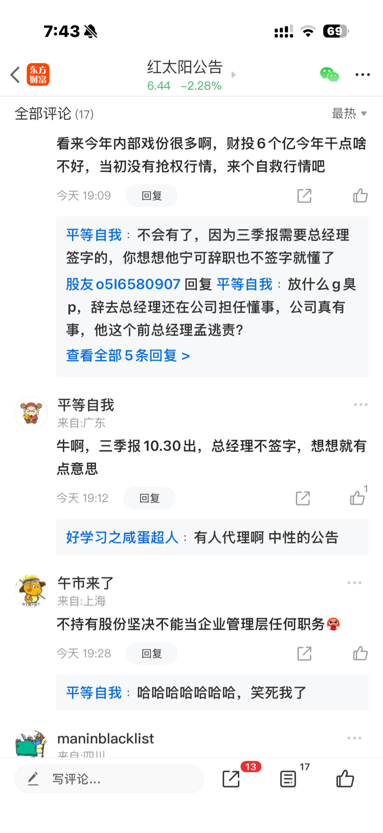 温馨提示: 1.根据《证券法》规定,禁止编造、传播虚假信息或者误导性信息,扰乱证券市场;2.用户在本社区发表的所有资料、言论等仅代表个人观点,与本网站立场无关,不对您构成任何投资建议。用户应基于自己的独立判断,自行决定证券投资并承担相应风险。《东方财富社区管理规定》