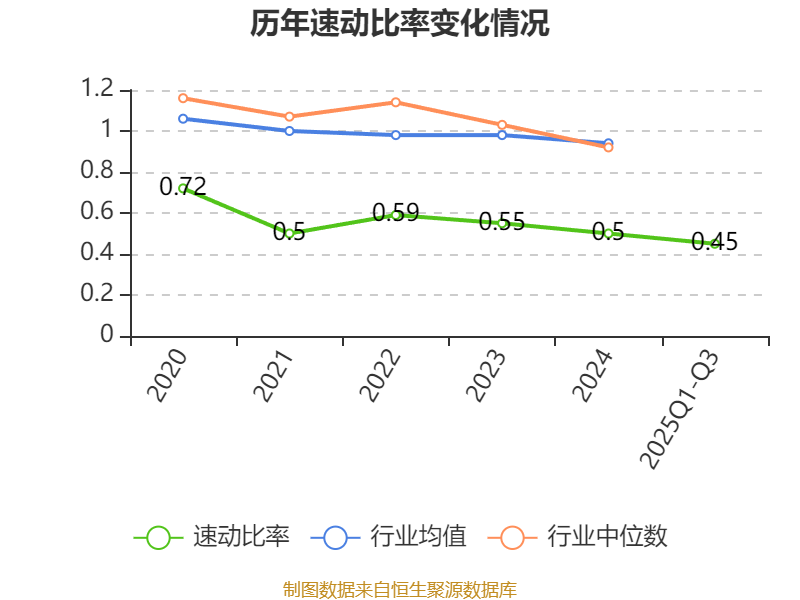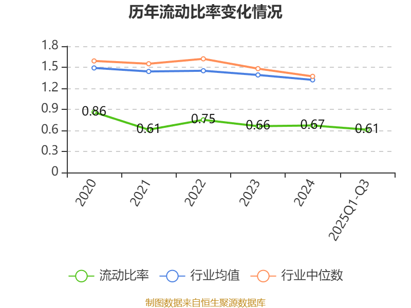 2025年前三季度,公司流动比率为0.61,速动比率为0.45。