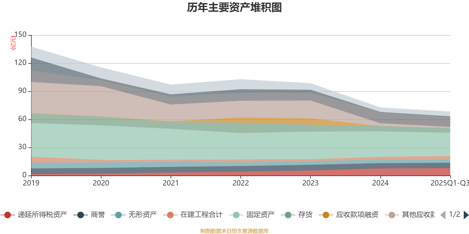 资产重大变化方面,截至2025年三季度末,公司其他应收款(含利息和股利)较上年末减少55.41%,占公司总资产比重下降2.2个百分点;在建工程合计较上年末增加23.74%,占公司总资产比重上升1.29个百分点;递延所得税资产较上年末增加4.93%,占公司总资产比重上升1.18个百分点;应收票据及应收账款较上年末减少12.12%,占公司总资产比重下降1.06个百分点。