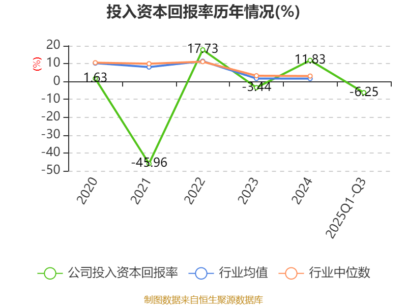 盈利能力方面, 2025年前三季度公司加权平均净资产收益率为-9.64%,同比下降12.29个百分点。公司2025年前三季度投入资本回报率为-6.25%,较上年同期下降10.25个百分点。