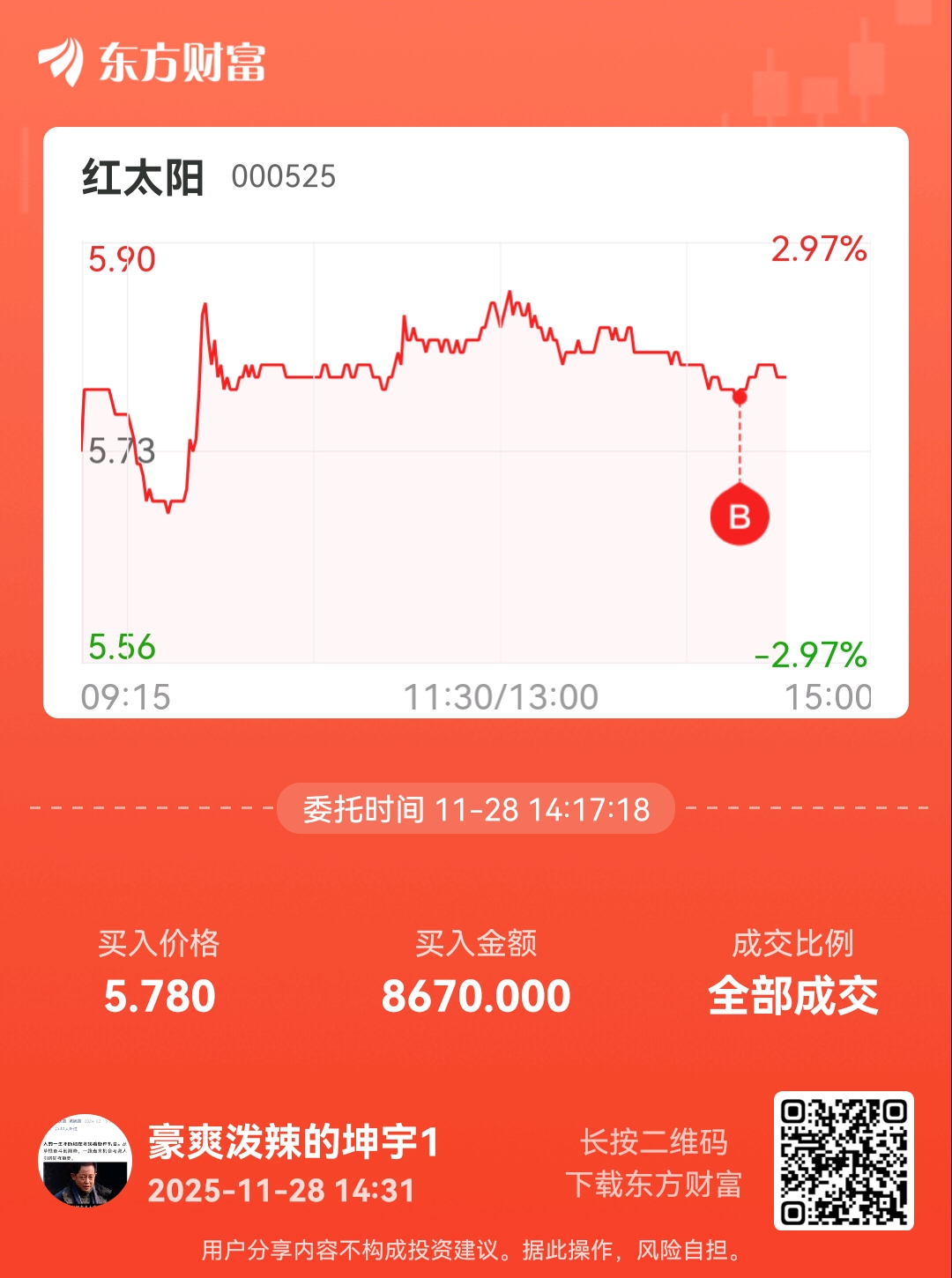 委托标的:买卖方向:笔记:红太阳红红火火!星期一估计有板!拿稳了拿住!习惯就好啦