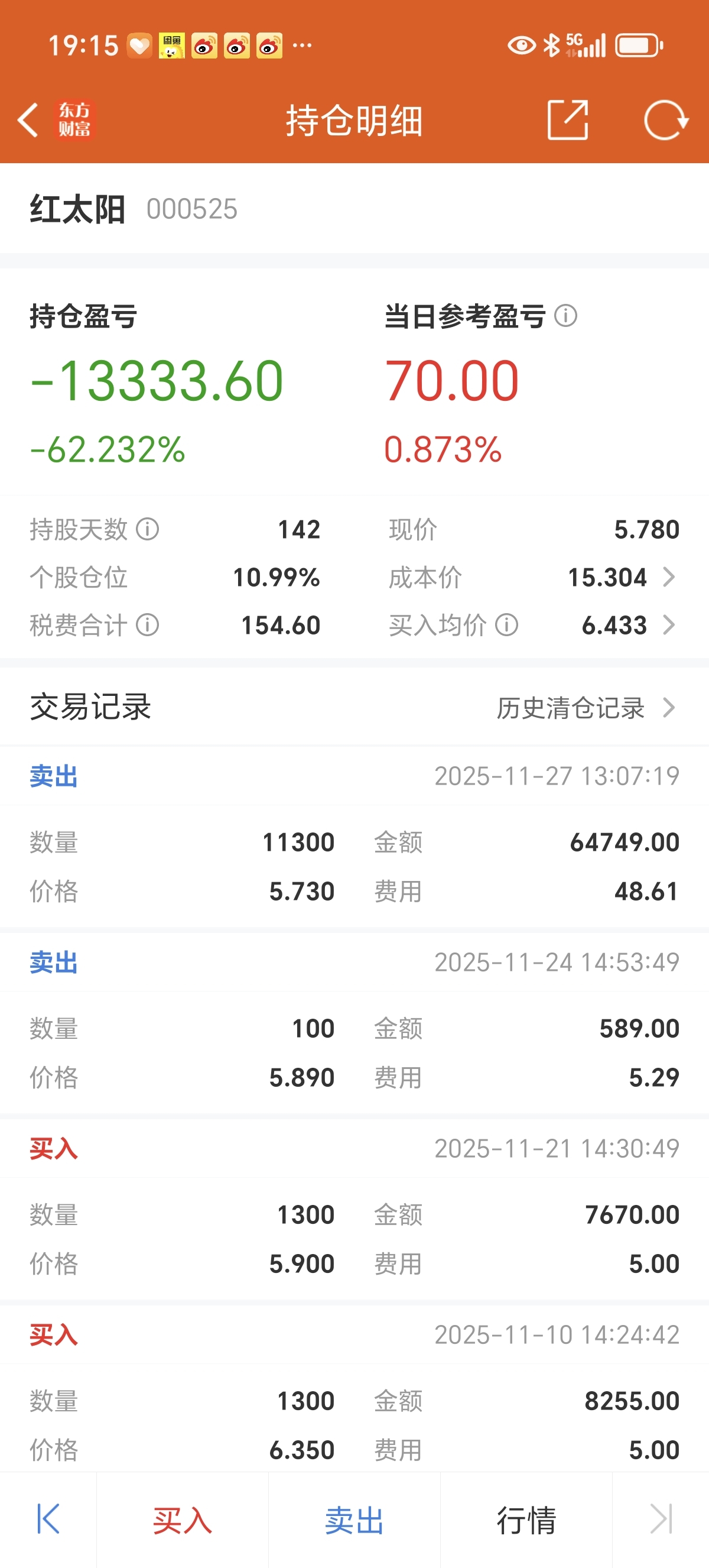 $红太阳(SZ000525)$ 小刀割肉一刀刀来。企稳了就回来
