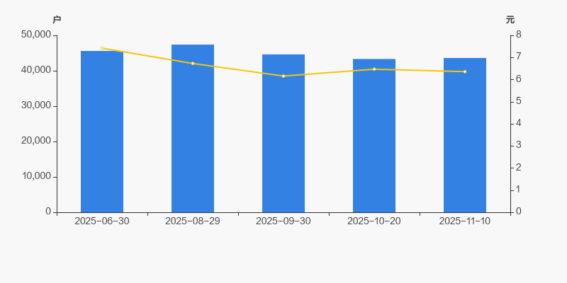 2025年6月30日至今,公司股东户数有所下降,区间跌幅为4.37%。2025年6月30日至2025年11月10日区间股价下降14.29%。