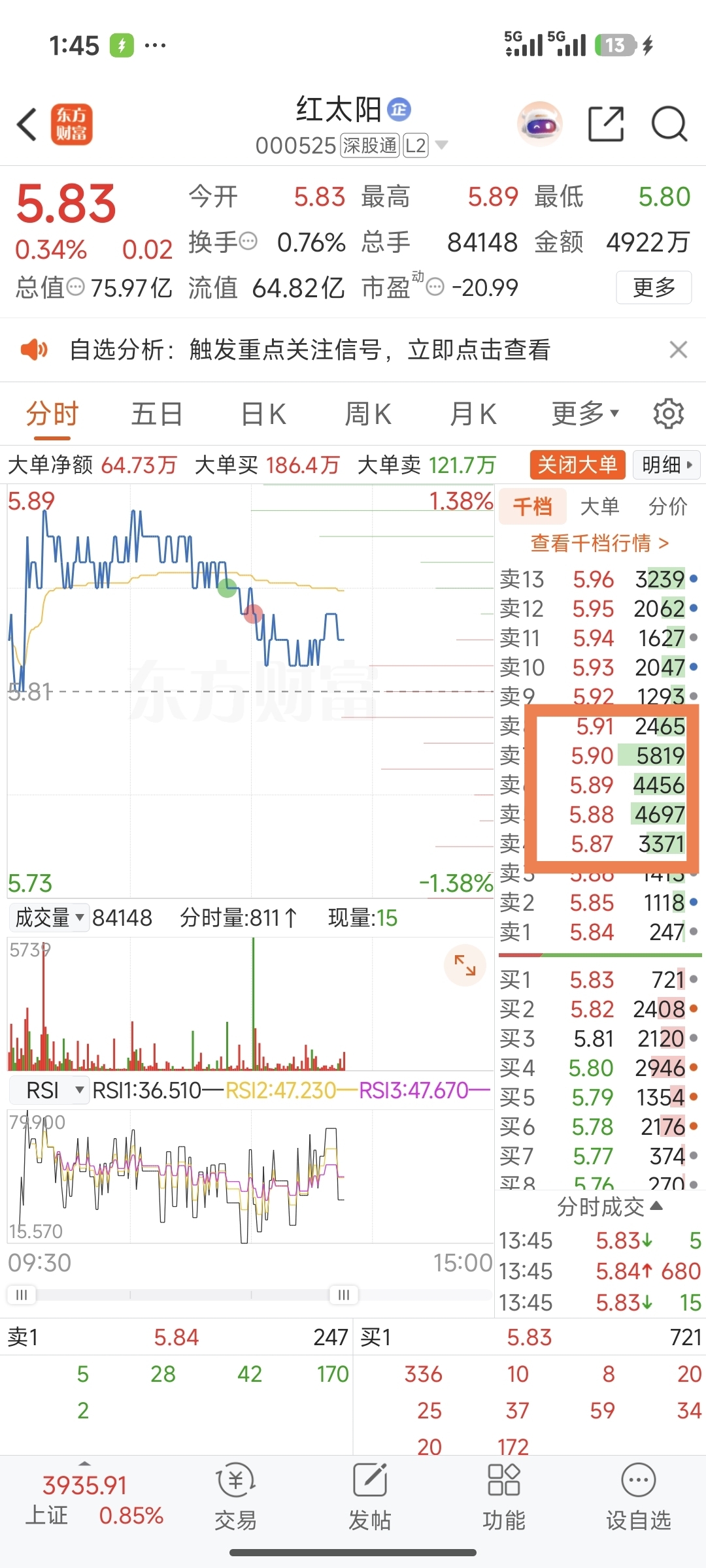 $红太阳(SZ000525)$ 上压下托的,就是耗,与其在这里耗,不如先出来买保险,银行,和证券。这是近期的确定性机会。