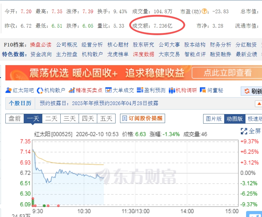 $红太阳(SZ000525)$ 昨天全天交易额才8.27亿,尾盘就拉到了涨停。今天才一个半小时交易额就到了7.23亿,按照这个趋势,下午总成交额不是得十几个亿?能再来个涨停不?我已经在涨停价下方挂了单,期待着