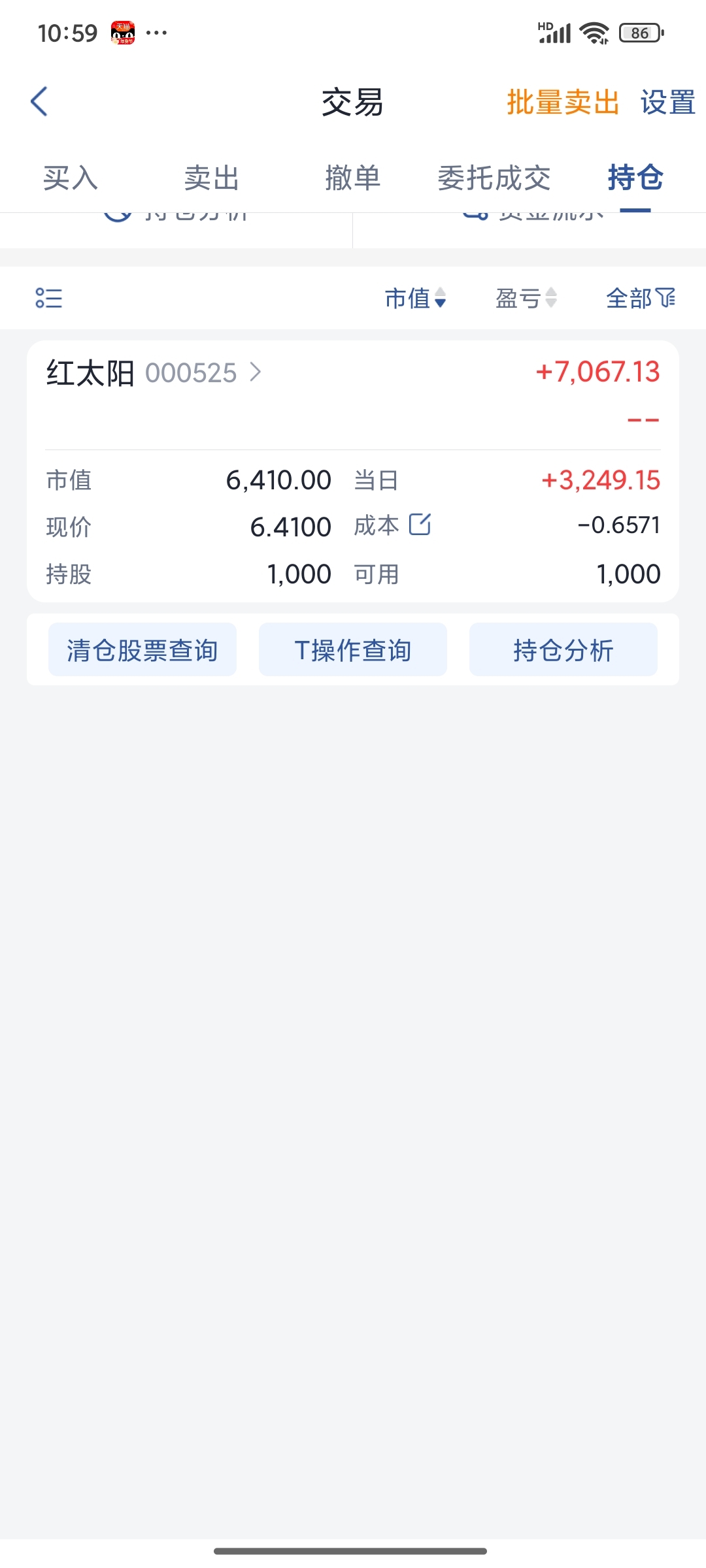 $红太阳(SZ000525)$ 等5块再加仓进去