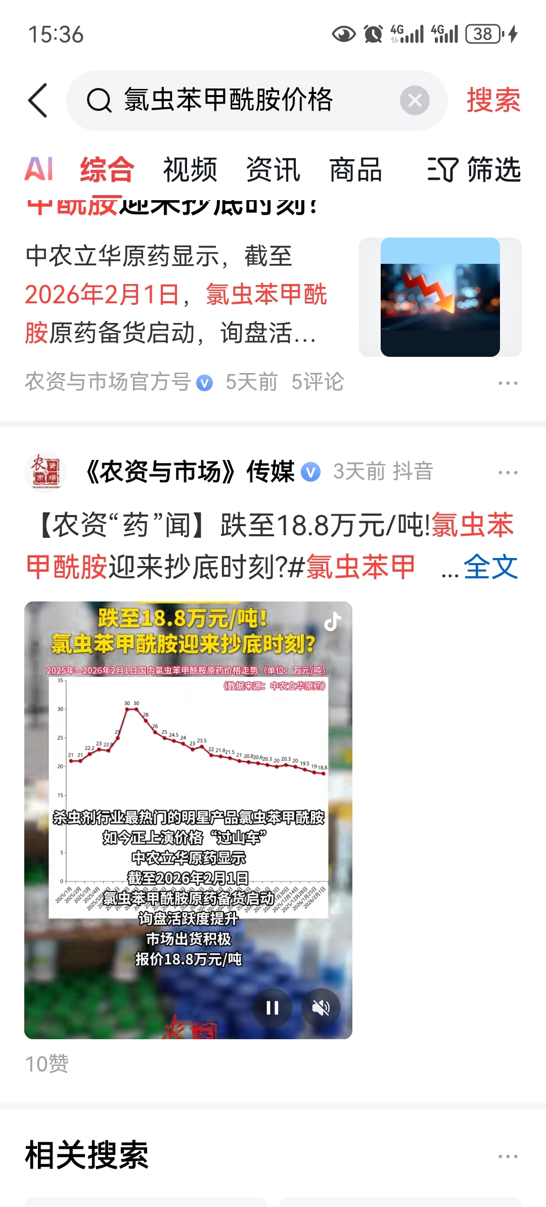 $红太阳(SZ000525)$ 氯虫苯甲酰胺价格掉落了好多,行业内生产成本在23万元一吨。红太阳一季报不乐观啊。
