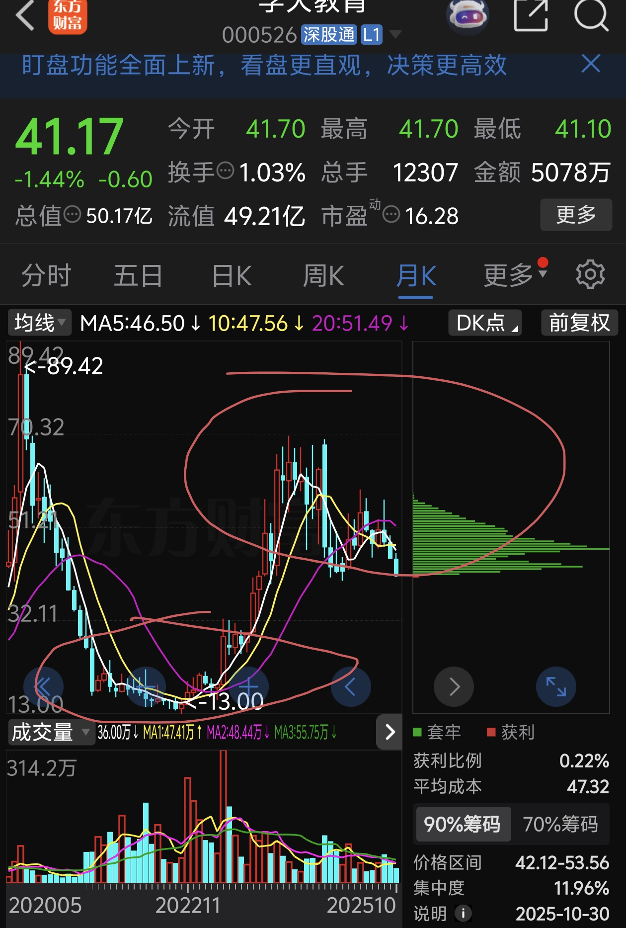 $学大教育(SZ000526)$ 问一个问题,底部上来的筹码到底是散户的呢还是主力的