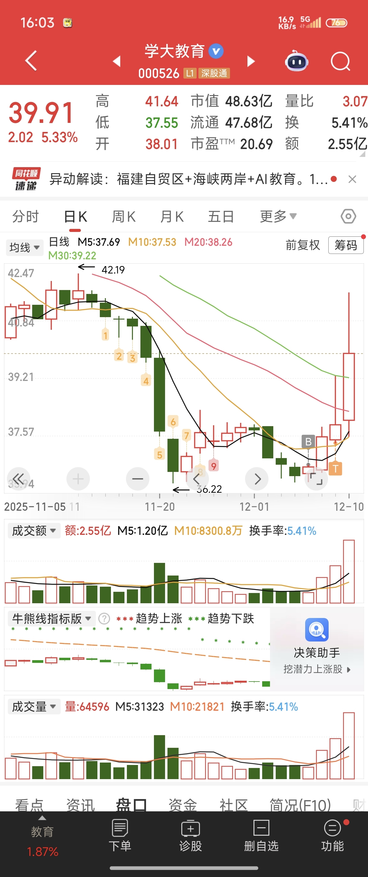 $学大教育(SZ000526)$ 学大我又回来了,还是能抄到你的底