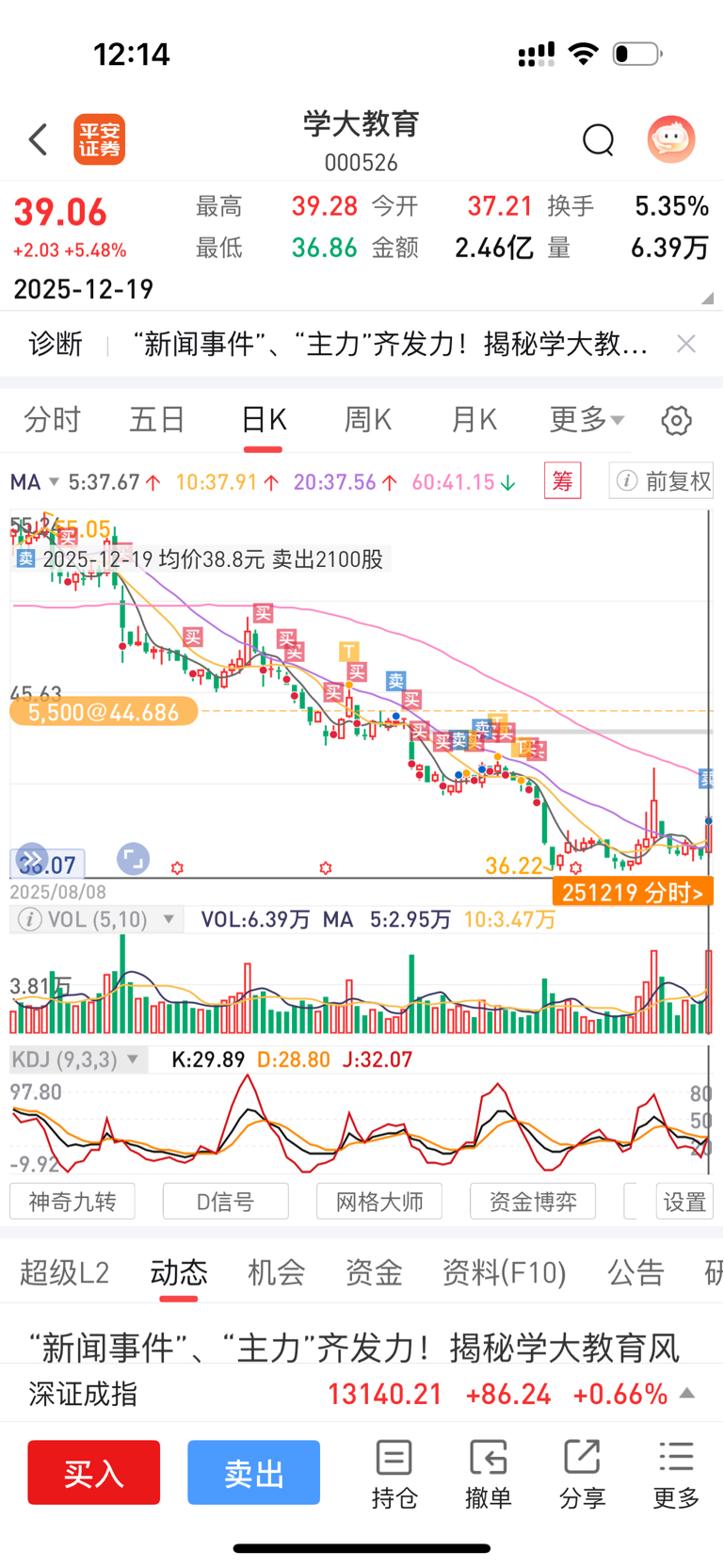 $学大教育(SZ000526)$ 唉 ,看这货喜欢36-38打转。 今天卖了。 成本增加了一块 , 下周给个机会再买入