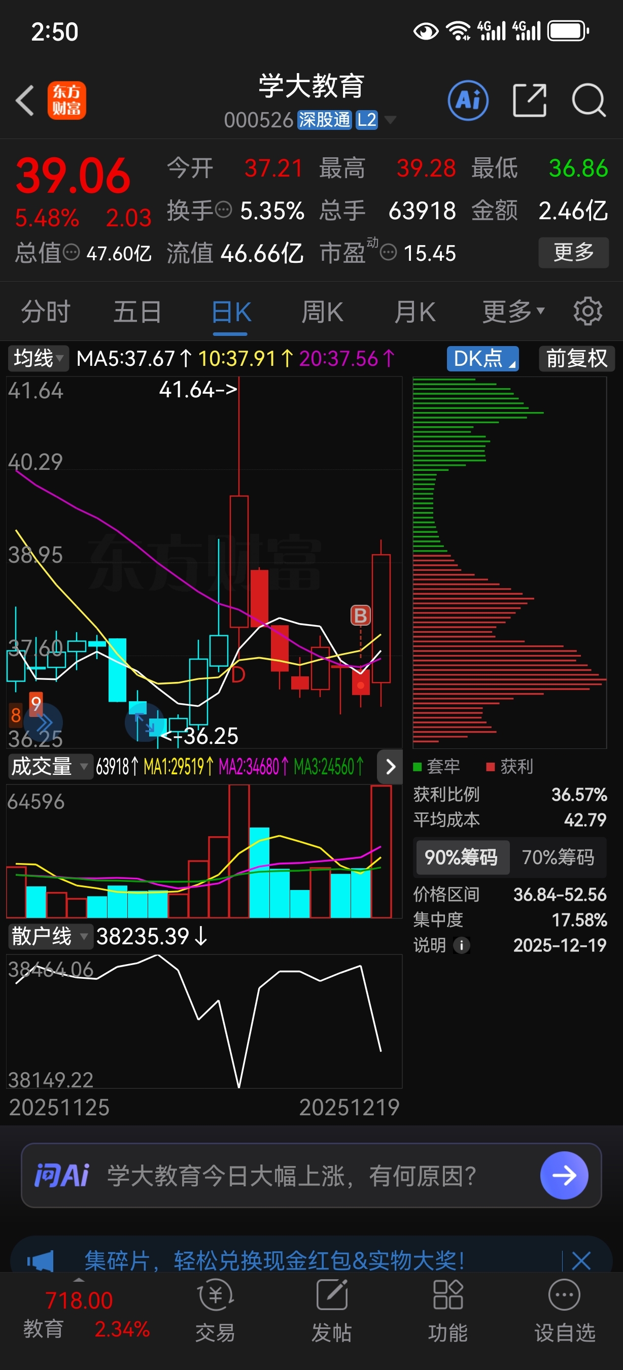 $学大教育(SZ000526)$ 我觉得周一还能涨