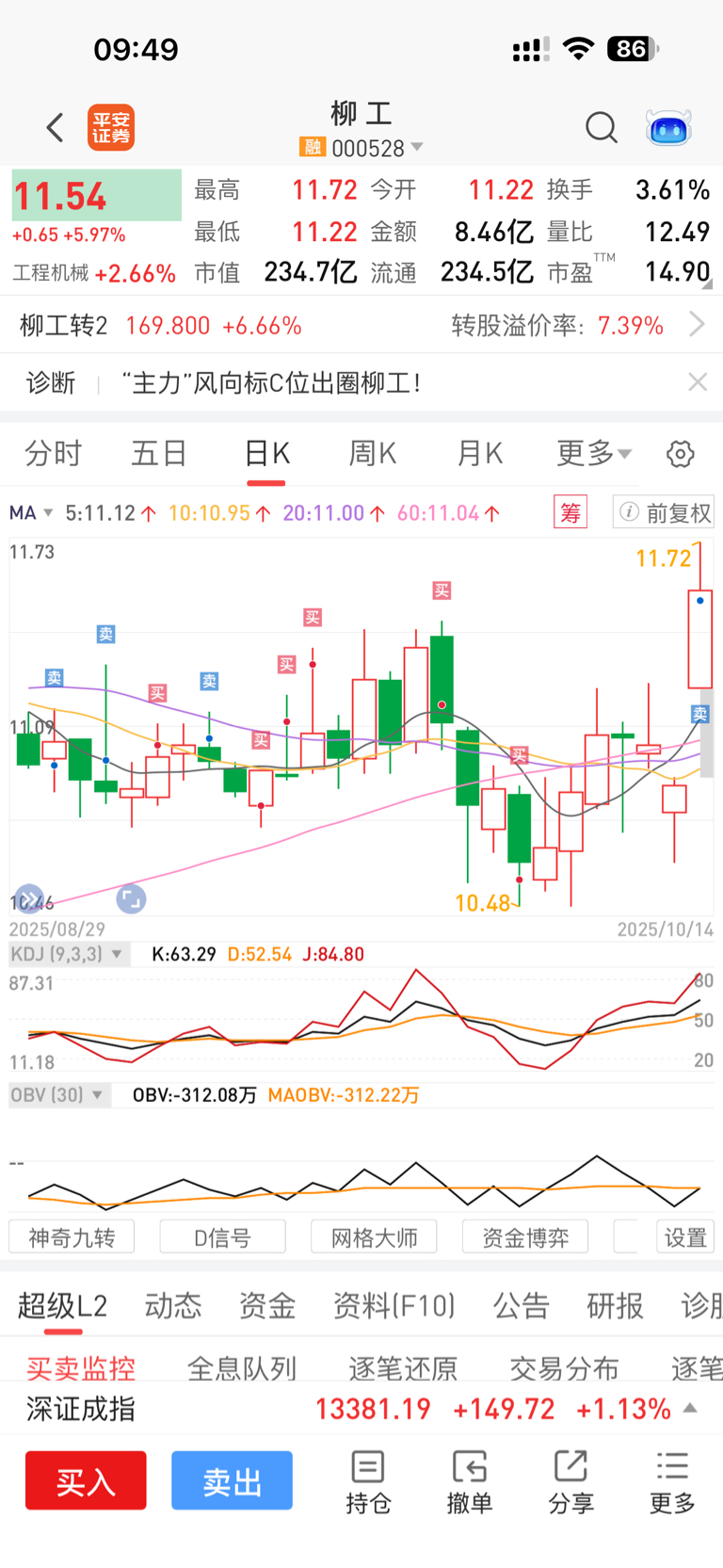 $柳 工(SZ000528)$ 以为会涨停,哎6个点先撤了,祝各位好运