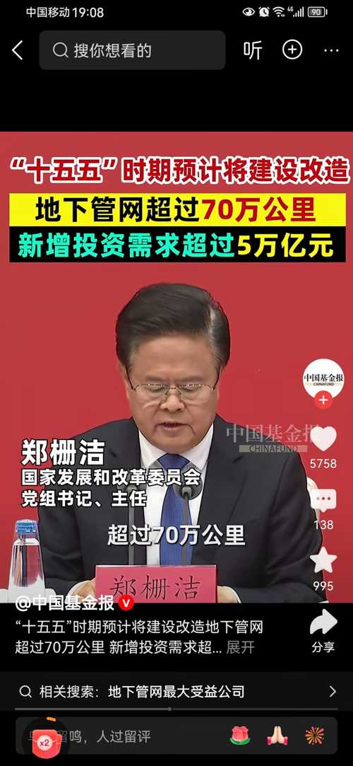 十五五期间,5万亿投资建设管网。
