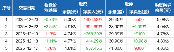 柳工:融资净买入1406.52万元,融资余额5.05亿元(12-23)